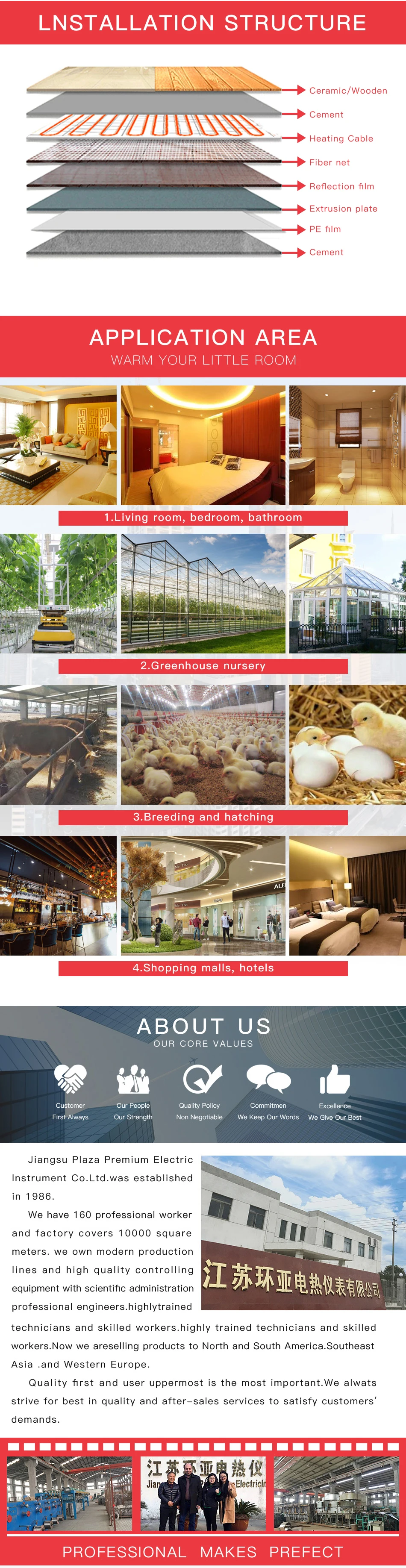 The normal laying power is 100-160 watts per square. Different areas can be increased or decreased according to the room's own insulation and the type of floor. The installation is very simple, we will guide the installation, the normal laying distance is 12cm.