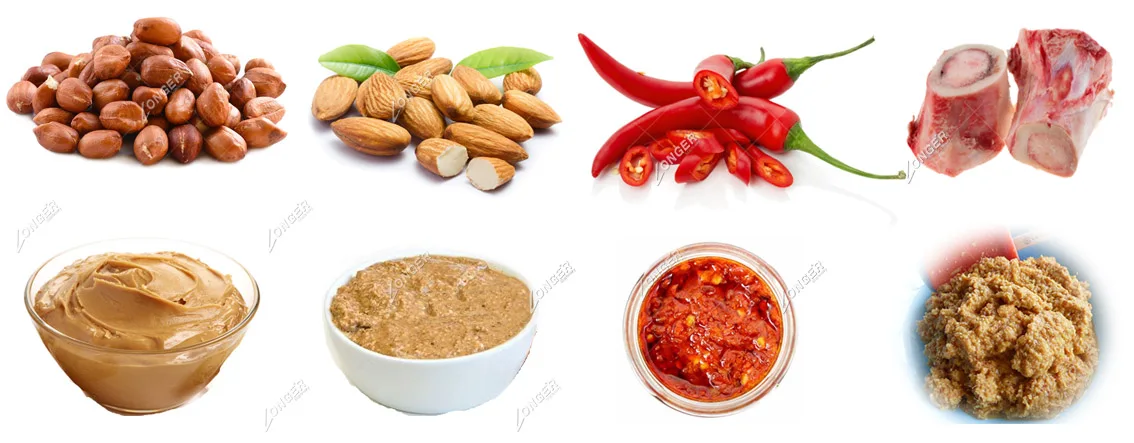 This peanut butter making machine can grind a variety of materials, such as nuts, peanuts, almonds, sesame seeds, chickpeas, cocoa beans, soybeans, tamarind.