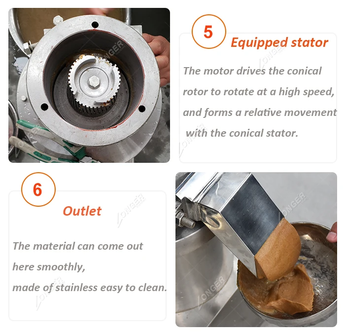 1. Compared with the traditional stone peanut butter mill, the peanut butter made by this peanut butter making machine South Africa is of good finess and rich in aroma. The palate is the same as the traditional stone mill, but it has a large capacity and no impurities.
