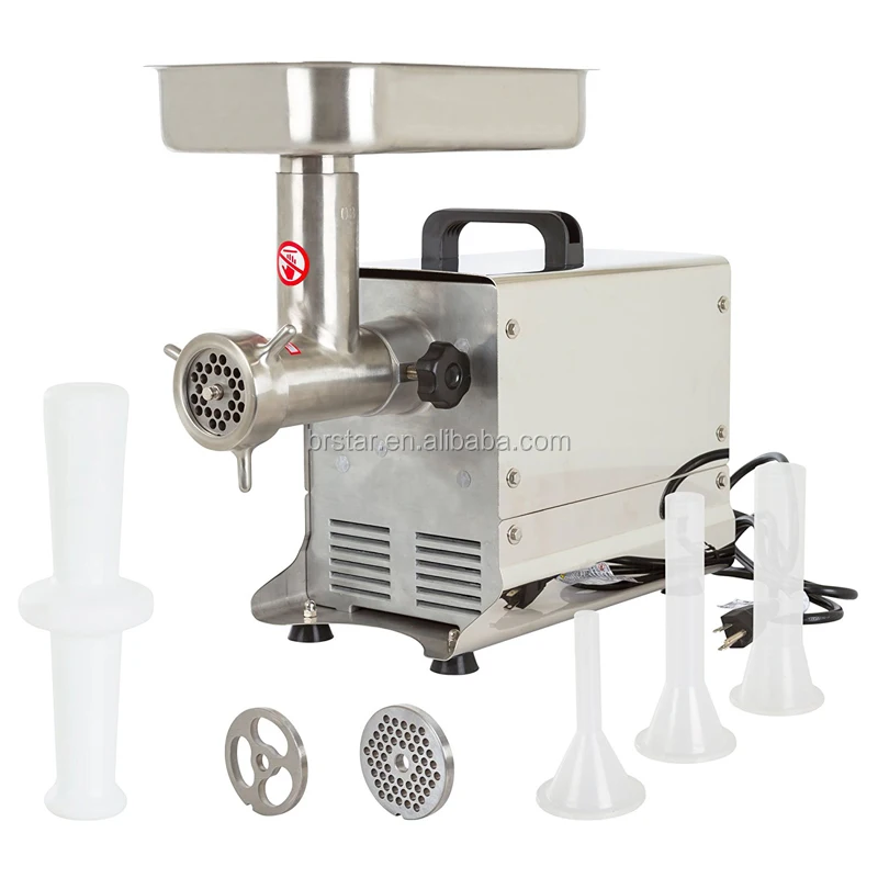 The whole body is made of all stainless steel. It adopts 2200W full-cooper with 170 r/min rotation speed and 350 kg/h output. It is perfect for food grinding in restaurants, supermarkets, fast food stores, butcher shops, etc.