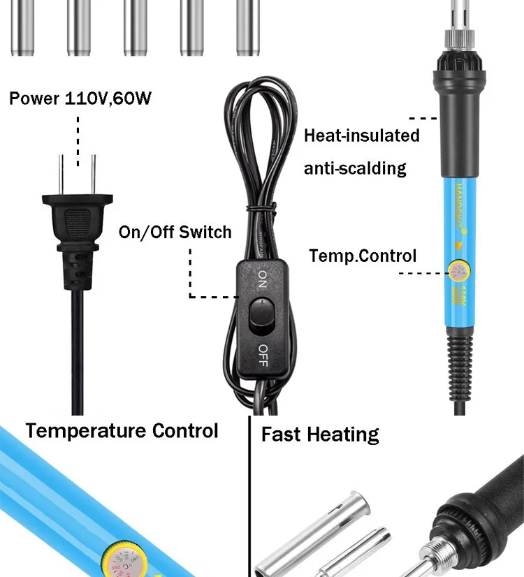 1 x Adjustable Temperature Welding Iron with ON/OFF Switch x 1