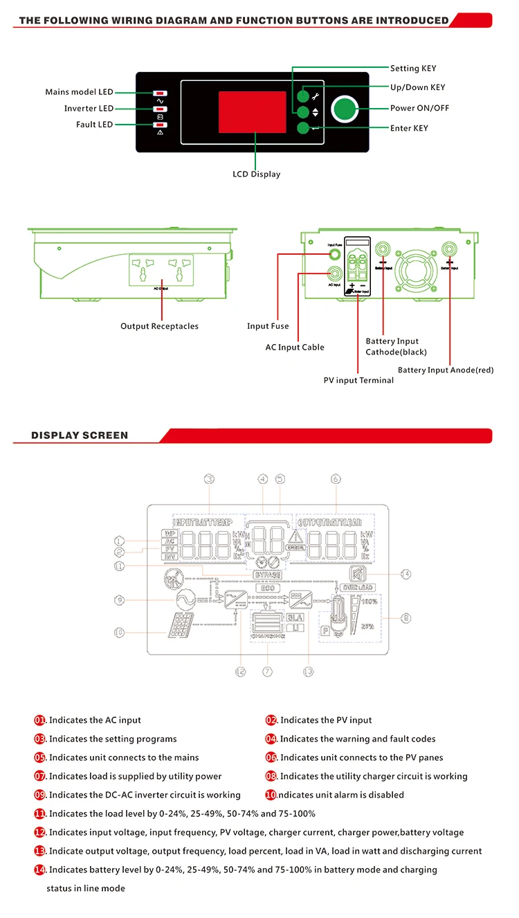3.Multi-function LED&LCD Display and buzzer alarms.