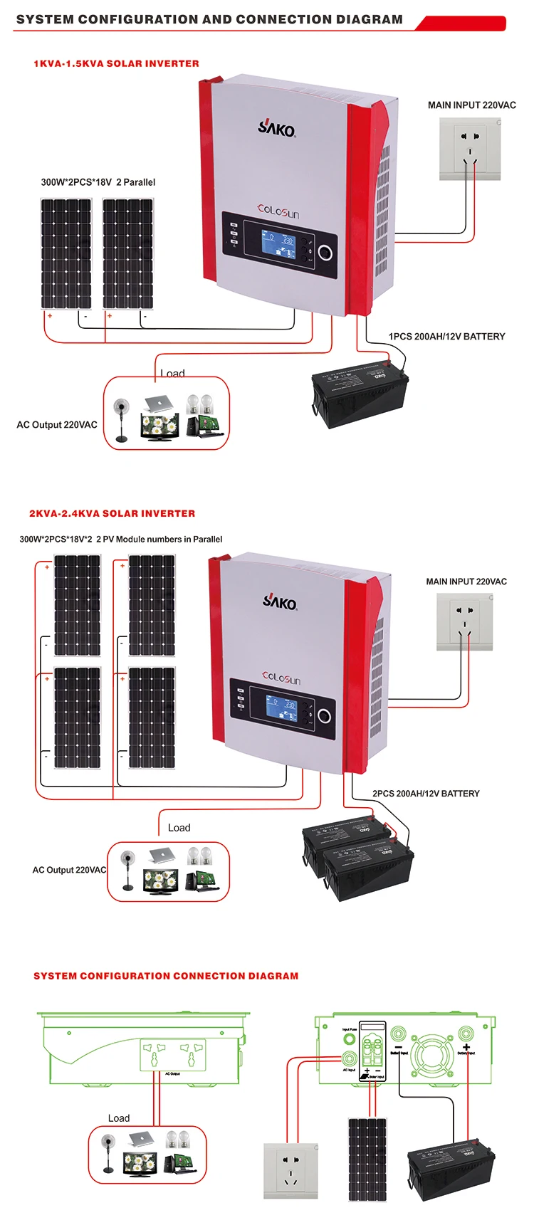 SAKO Wholesale Built-In PWM Solar Charge Controller 1KVA~2.4KVA Hybrid Solar Inverter