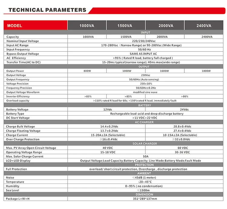 | MODEL | SKN-HDS3 1KVA/12V | SKN-HDS3 1.5KVA/12V | SKN-HDS3 2KVA/24V |
