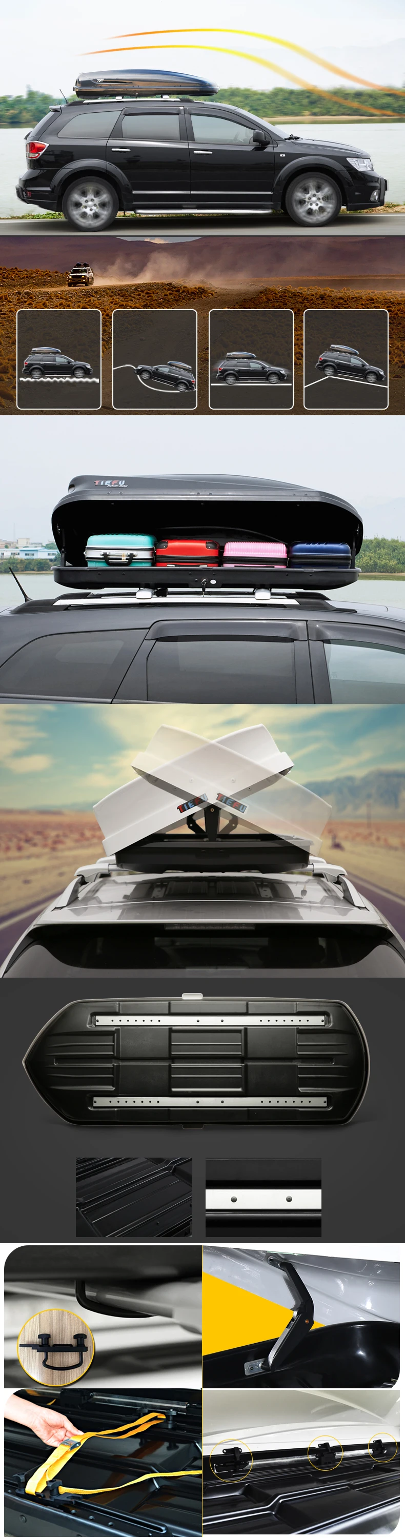 Application: Car roof box is mainly applied in outdoor activities. For example, self-driving , camping , traveling.