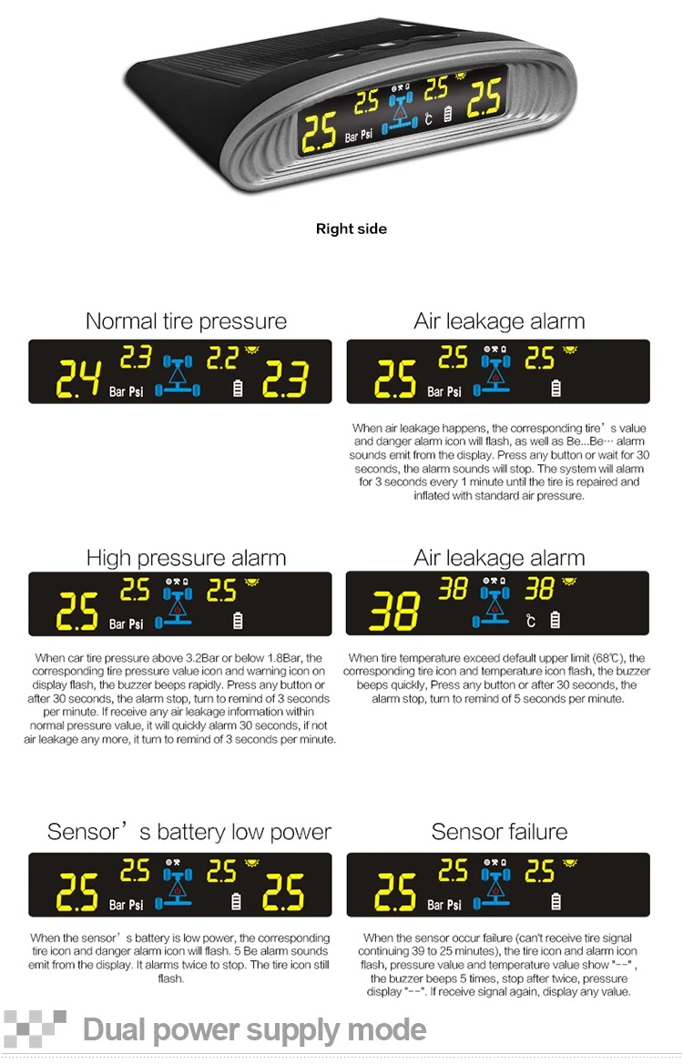 4.Slow air leakage alarm to remind owner replacement of tires in time
