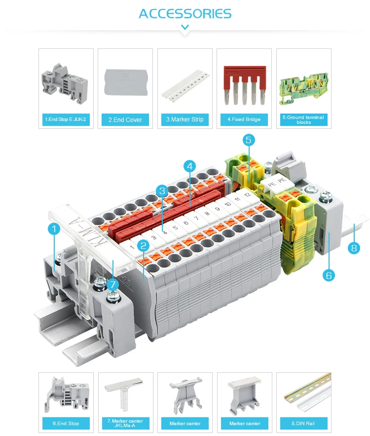 l Multi-conductor terminal blocks allow you to distribute potentials at low cost while saving space.
