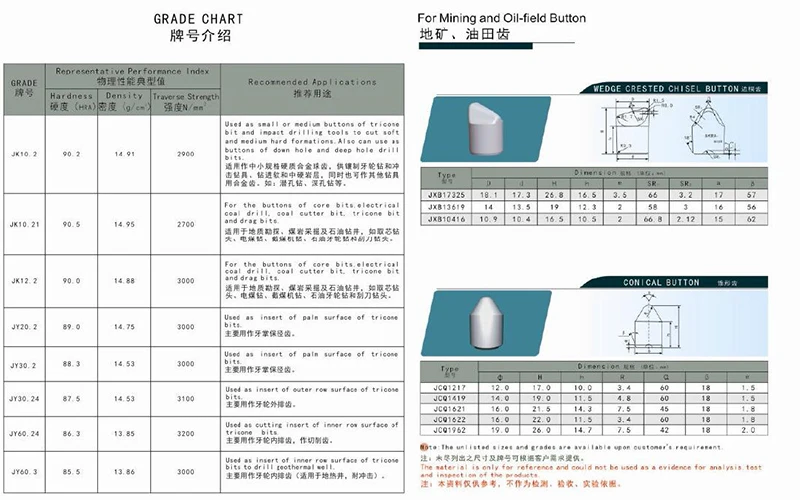 | Packaging Detail: | cemented carbide oil well drill bits button inserts packed in every 1.5kg per waterproof plastic bag in paper box, then load in carton weight around of 20 kg. Also packed acoording to customized requirments.; | Application: | For oil well drilling; |