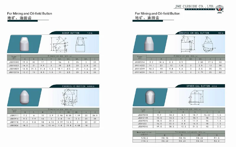 cemented carbide oil well drill bits button inserts