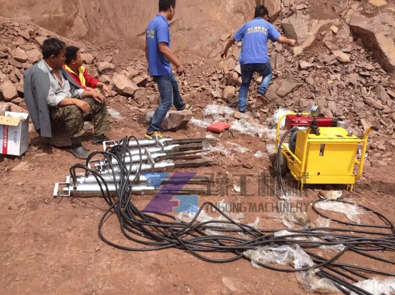 c12 hydraulic splitter is a whole set of device to split rock, stone, concrete etc. It consists of diesel power pack, hydraulic power unit and splitting wedges. It is our newly designed device which is more powerful and cost-effective compared to traditional explosives. It can develop a very huge splitting force (Maximum 1000T) when put into the pre-drilled holes of rock, stone or concrete, and crack it into pieces within several seconds. c12 hydraulic splitter is widely used in construction, mining, demolition of buildings, bridges, etc.