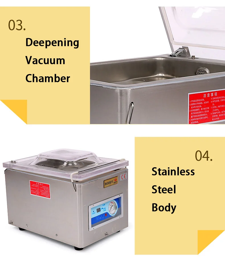 | Machine Name | Desk type single chamber vacuum packing machine |