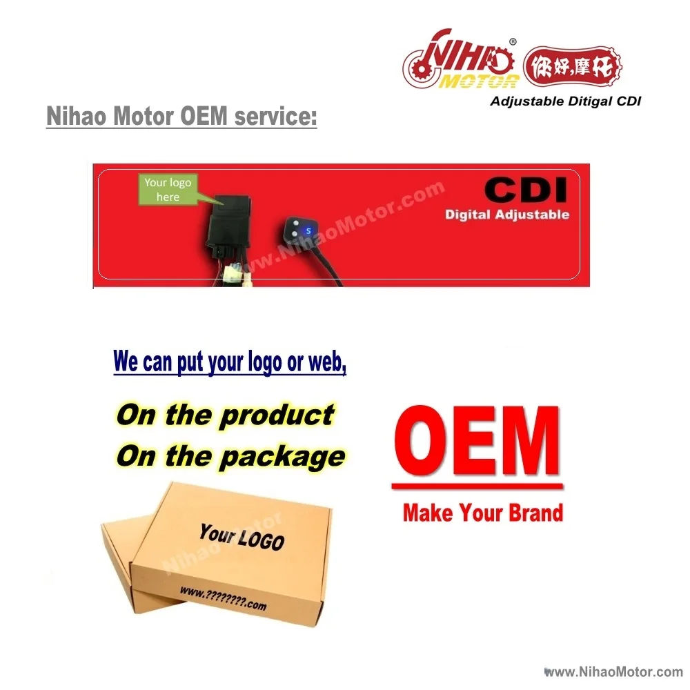 Not only to make Chinese motorcycle parts, Chinese scooter parts, motocross,dirtbike,euduro parts,such as CDI limited,25km,45km CDI,GY6,139QMB,157QMJ,CG,CB,NC by Nihao Motor for the brand including, BAOTIAN, BASHAN, BENZHOU, CFMOTOR, CHARMING, DAYANG, DINLI, FUXIN, GEELY, GILERA, HANGLONG, HAOJIN, HAOJUE, HONGZHOU, HUATIAN, JIAJUE, JIANSHE, JINLUN, JMSTAR, JONWAY, KAITONG, KEEWAY, KINROAD, KYMCO, LIFAN, LINGBEN, LINGTIAN, LINHAI, LINTEX, LONCIN, LONGJIA, MAWI, MEIDUO, MOTORRO, QINGQI, RHON, RIEJU, SACHS, SHINERAY, SKYGO, SUKIDA, TAOTAO, VESPA, VONROAD, WANGYE, WONJAN, XINGYUE, XINLING, XINTIAN, YIBEN, YINGANG, ZHONGYU, ZNEN, ZONGSHEN,HISUN,RATO,JIAJUE,RIYA,FYM,
