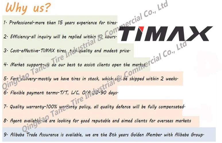 We are QINGDAO TANCO TIRE INDUSTRIAL AND COMMERCIAL CO., LTD, specializing in car tires and truck tires export for over 15 years. We have been working with clients from more than 80 countries and areas in the world, and we are confidence in supplying qualified tires with reasonable price, fast delivery and professional service.