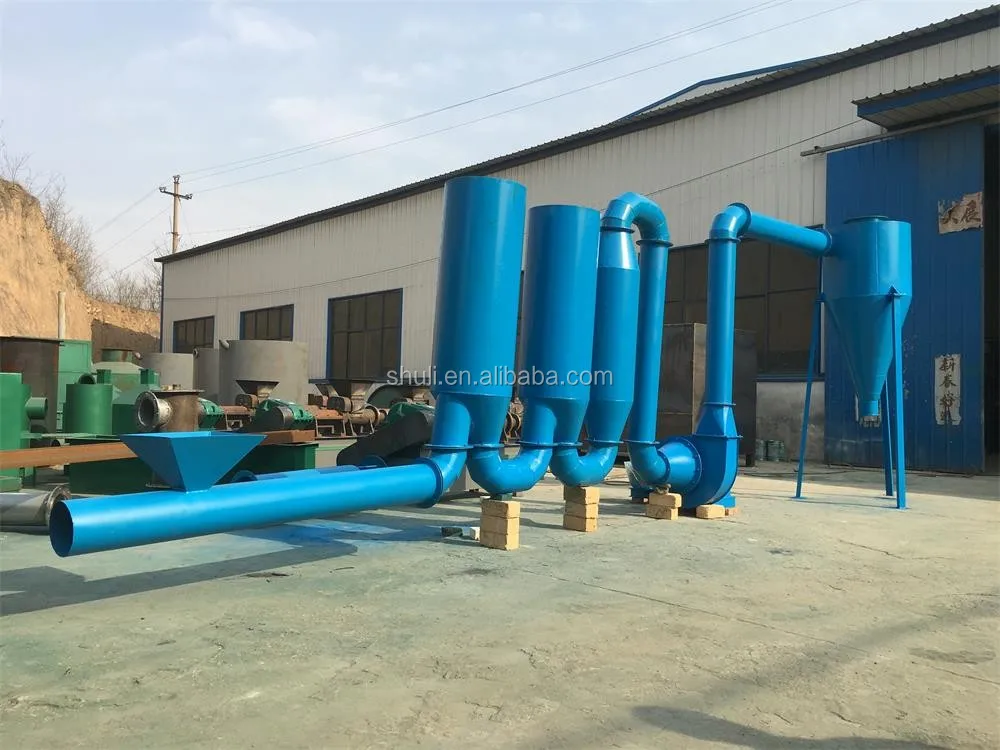 Airflow dryers, also known as ducted dryers, are important equipment for the production of charcoal. It works by feeding wood chips containing moisture into the hot air stream to obtain dried wood chips. Its models are small, medium and large. The newly developed domestic leading drying equipment of our factory adopts secondary heating circulation system to enhance the heat and mass transfer rate. It has automatic feeding, fast hot air flow, full mixing of airflow materials, large drying strength and small dust. , time period, high thermal efficiency, high wet processing capacity and so on. The moisture of the wood chips can be dried at 40% to meet the requirements of the rod, which reduces the labor intensity compared with other dryers.