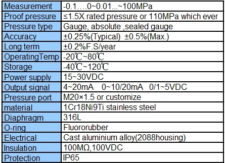 | Accuracy: | 0.1%FS, 0.2%FS, 0.5%FS; | Stability: | 0.2%FS/year; |