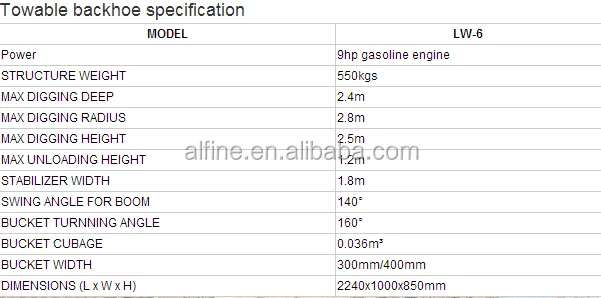 | Packaging Detail: | By iron package; | Product name: | towable backhoe; |