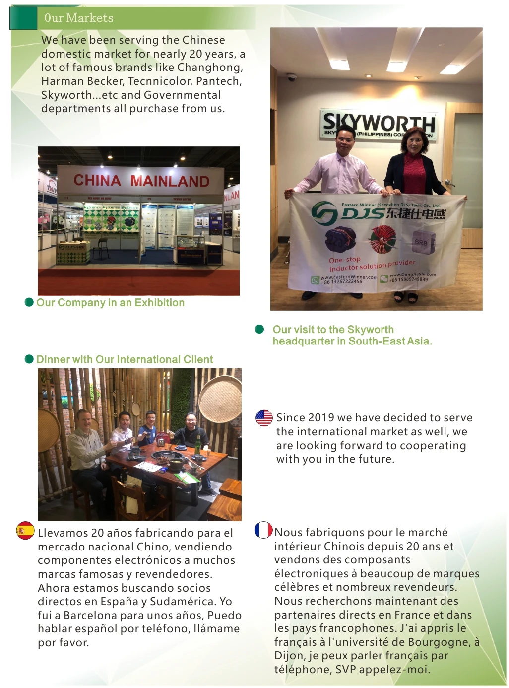 We have assembled an international sales team who speak French, Spanish, Japanese, Korean, Thai...etc. Please call us for the purchase of inductors(inducteur, inducteurs, inductores) and other electronic components.