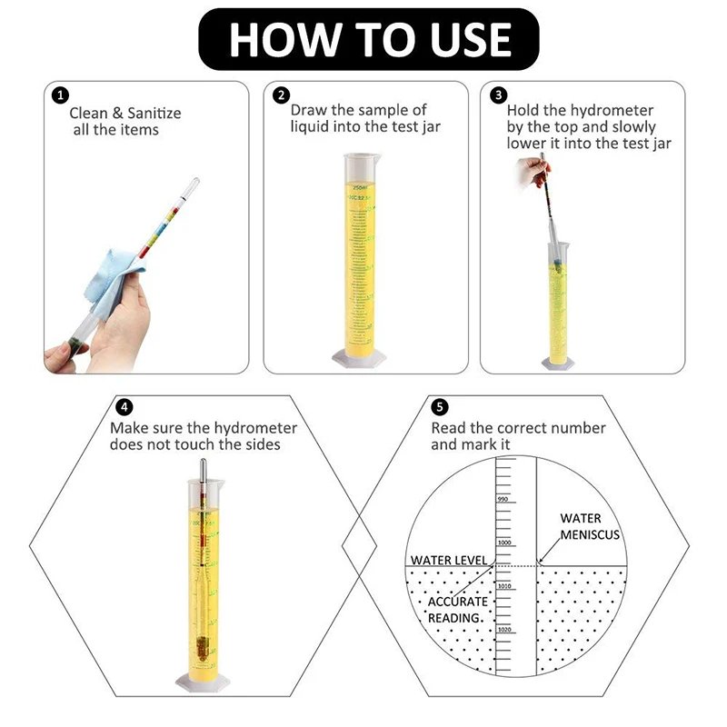 1* 3 Scale Hydrometer, 1*plastic Test Measuring Cylinder Cup |