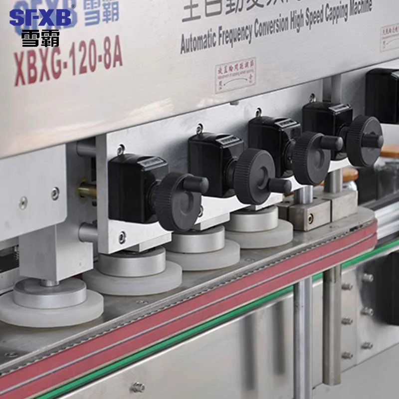 n Advanced HMI operating system, PLC control, 304 stainless steel surface; n 8-wheel capping in operation makes the screwing speed fast and effectively avoids theft-proofing cap breakage and damage to the bottle caps. n It is possible to cater to varied bottle caps within the scope of this machine without replacement of parts by simply adjusting the synchronous belt, distance between cap screwing wheels and rack height. n It applies to varied tall and short bottles which are round, square,oblate or flat square in shape. |