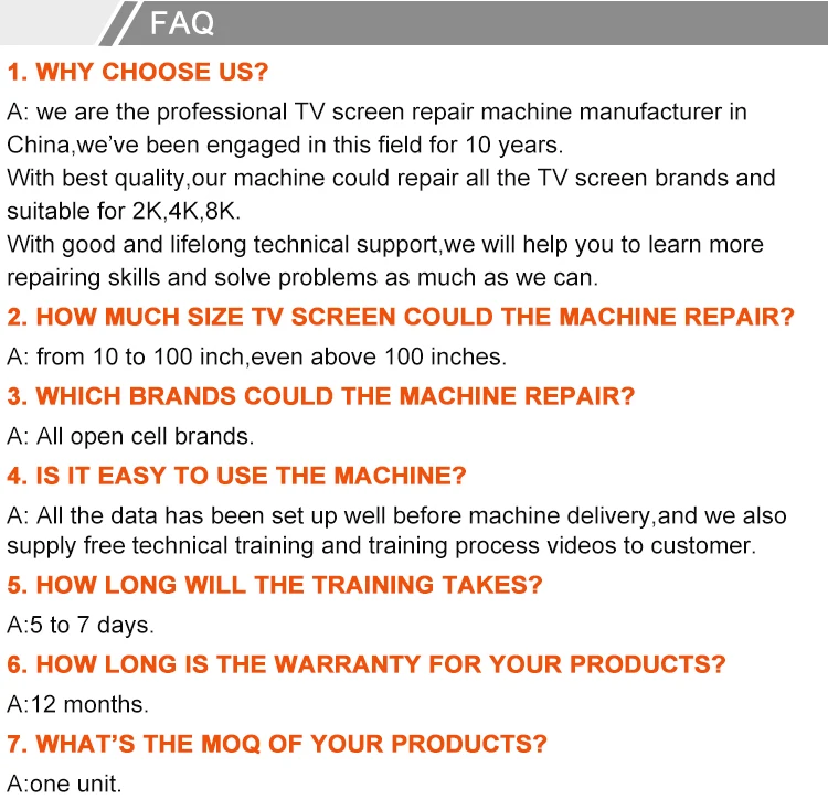 | Machinery Test Report: | Provided; | Application: | screen repair; |