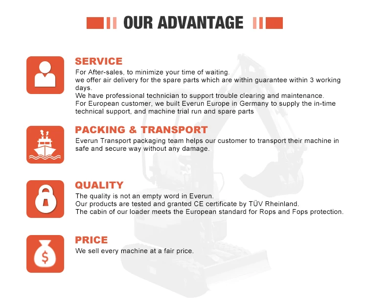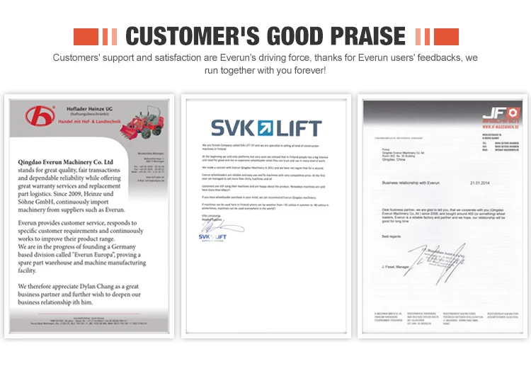 Qingdao Everun Machinery Co.,Ltd was established in 2007, has more than 10 years exporting experiences of wheel loaders and farming machinery. We have very much learned about the strengths and weaknesses of these machines. In 2011, we started to produce these machines ourselves under the help of our European customer. Most of our products are designed on the basis of European customers suggestion. Now Everun has two factories, one is in Qingzhou city, the other is in Jimo city. Everun products can be found working in more than 50 countries.
