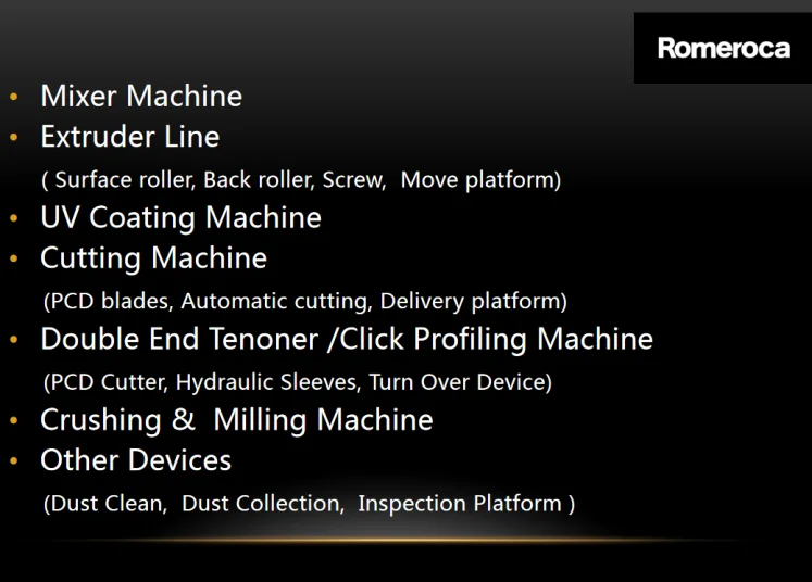 We supply all machines of full production line, and raw materials, decor film, wearlayer film, UV paint, ect.