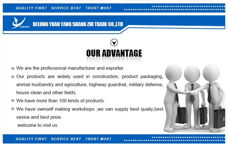 We are the professional manufacturer and exporter . Our products are widely used in construction , product packaging , animal husbandry and aquaculture , wire mesh, highway guardrail, military defense, cleaning and other fields.
