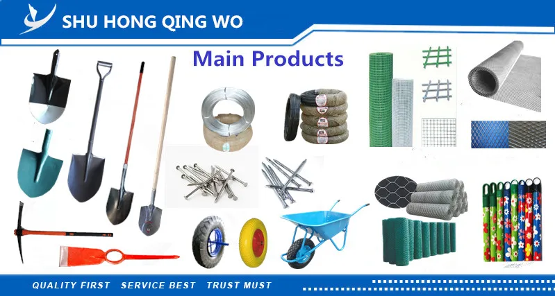 Main products: (Agricultural tools)Shovel head,Shovel with handle Pickaxe,Pickaxe with handle,Steel Hoe,Steel Fork,Wooden handle,Wheelbarrow, wheel.(Wire)electric glvanized