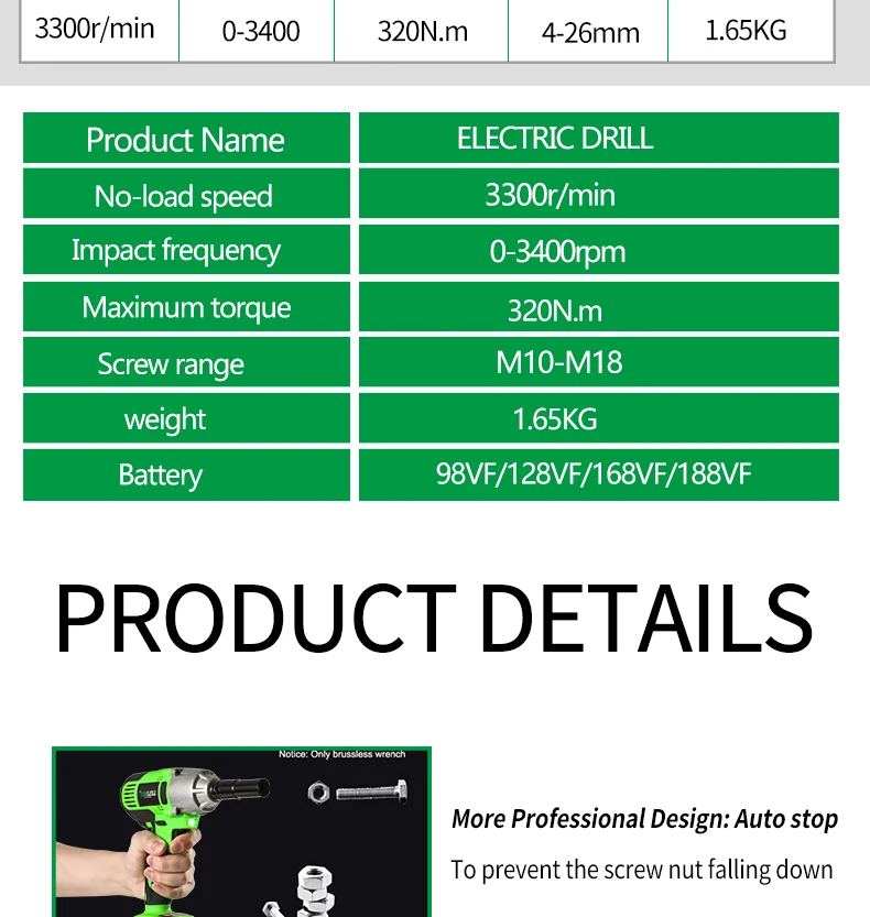 | Voltage: | 20V; | Max. Torque: | 460(Nm); |