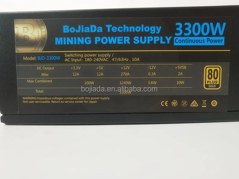 | Products Status: | Stock; | Packaging Detail: | Retail box and carton 3300W ATX Switching Power Supply 80 Gold Plus PSU 220V for 12 GPUs Miner Rig in stock; |