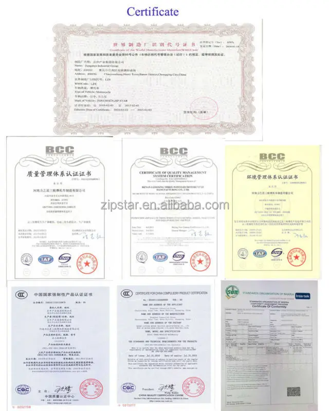 We have an annual production capacity of 300,000 units of motor tricycles with the brand of "ZIPSTAR". At present, according to specifications, our main products are divided into 9 large categories (50, 110, 125, 150, 175, 200, 250,), with more than 150 varieties including motor tricycles, electric tricycles electric bicycles. They were sold far to Russia, Uzbekistan, Algeria, Nigeria and Indonesia.