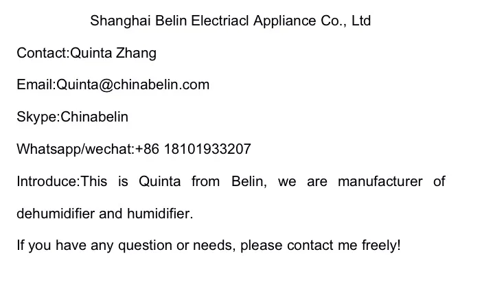 Hello, Dear friend, thanks for your interested in our product. This is Quinta from Chinabelin. We are manufactuer of dehumidifier and humidifier.