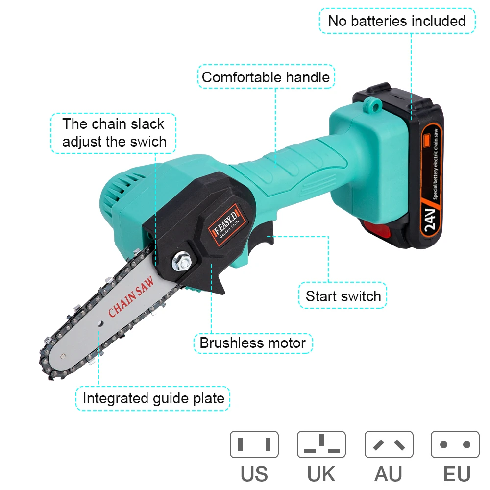 Mini Electric Saw Chainsaw 24V 1680W For Woodworking Garden Tools With Batterys Brushless Chain Saws Wood Cutters