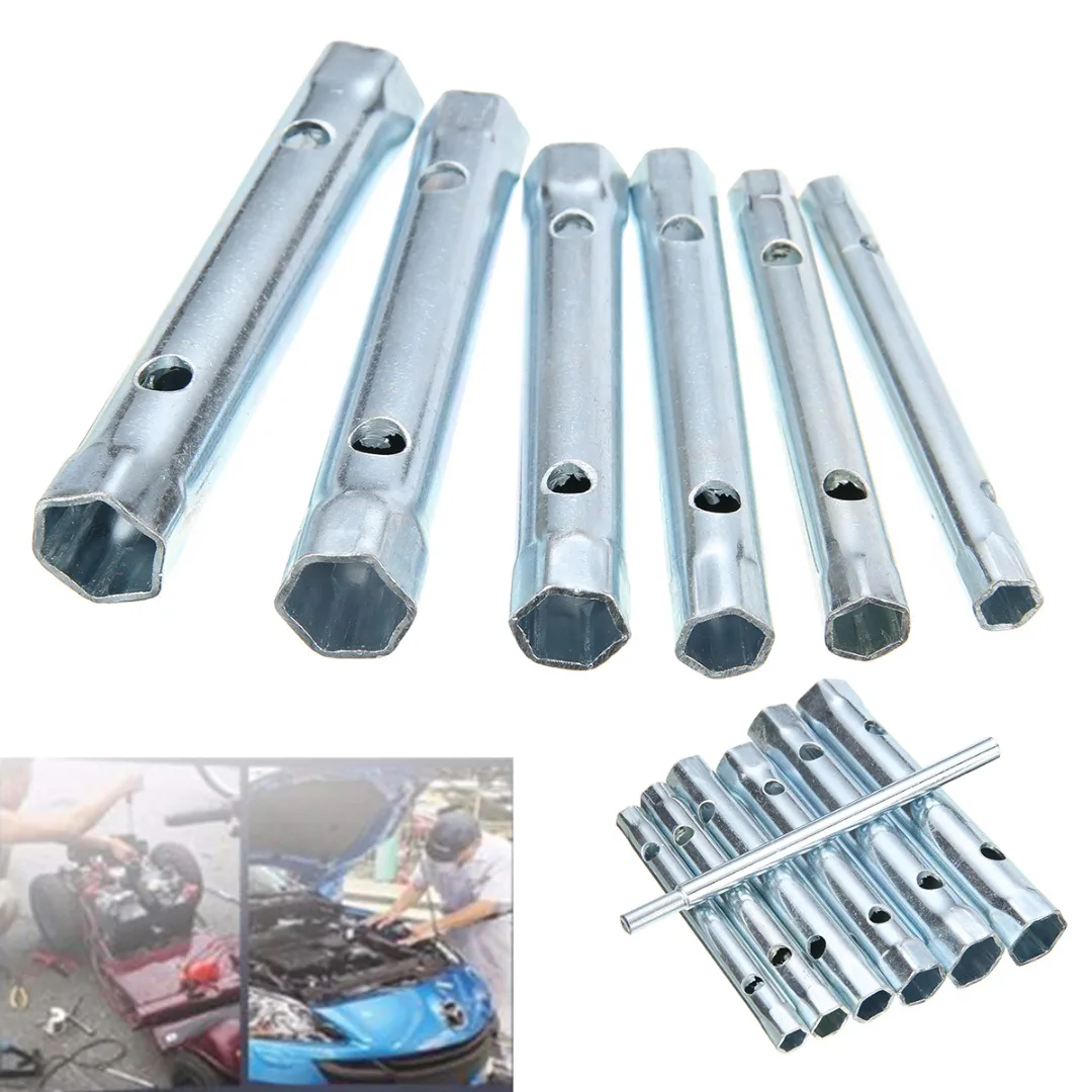 7Pcs 6mm-17mm Tubular Tube Spanner Wrench Box Spanner Set Metric Socket Set for Tap Car Repair Hand Tools