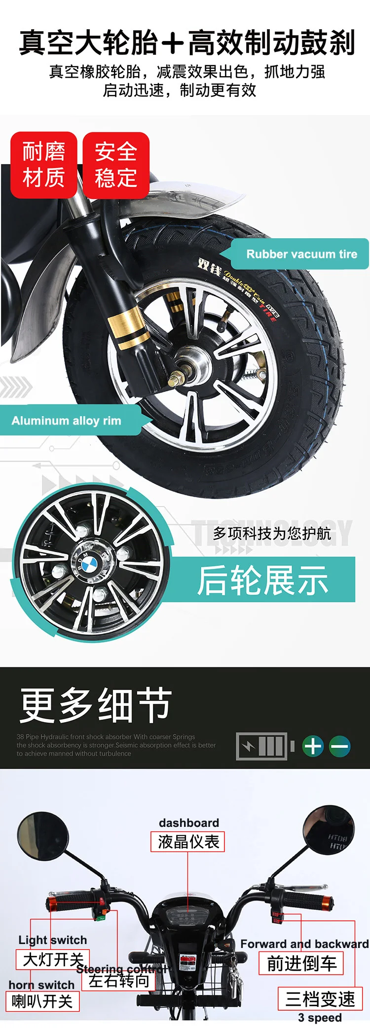 | Style: | adult tricycle; | Power: | 501 - 800W; |