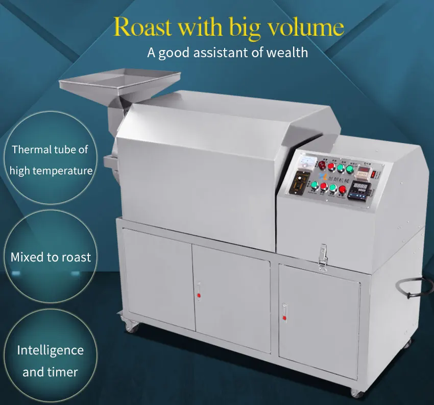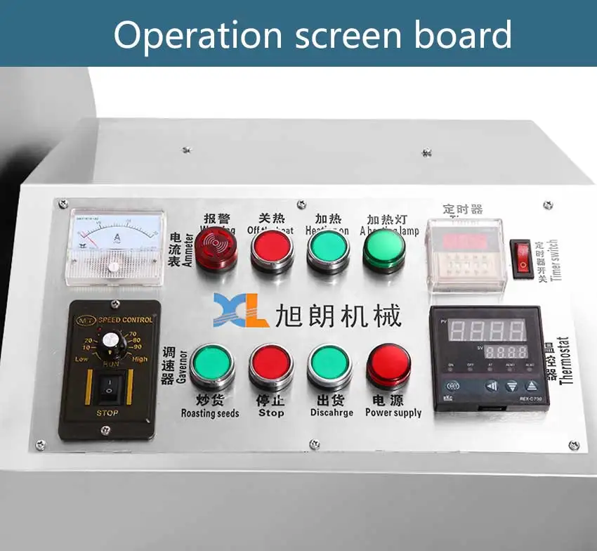 Xulang company presents newest design of luxury roaster machine.The whole machine is made of advanced stainless steel which is precisely designed and manufactured according to the requirement of processing production of high-end customers.Internal racks of the machine are made of extra thick steel board,fried pot is made of 3.0mm thick stainless steel board which keeps consistent with the requirement of foodstuff processing.The machine equips with high-end electronic components.Appearance of the whole machine is luxurious and high-grade,operation is stable,heating is rapid and uniform,roasting effect is unique and luxury roaster machine is highest-grade and best useful in the market.Commitment to the tenet serving all of customers in the world,price maintains reasonable!Convenience,practice and high efficiency.