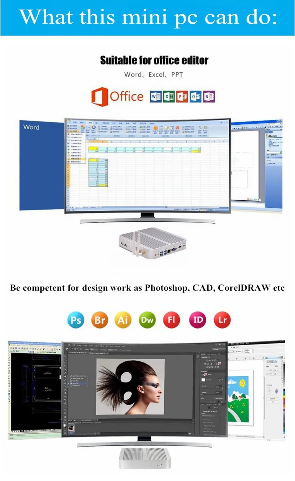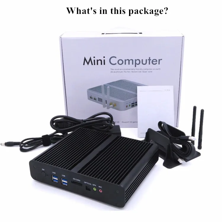 1* Mini PC; 1* power adapter; 2* Antennas
