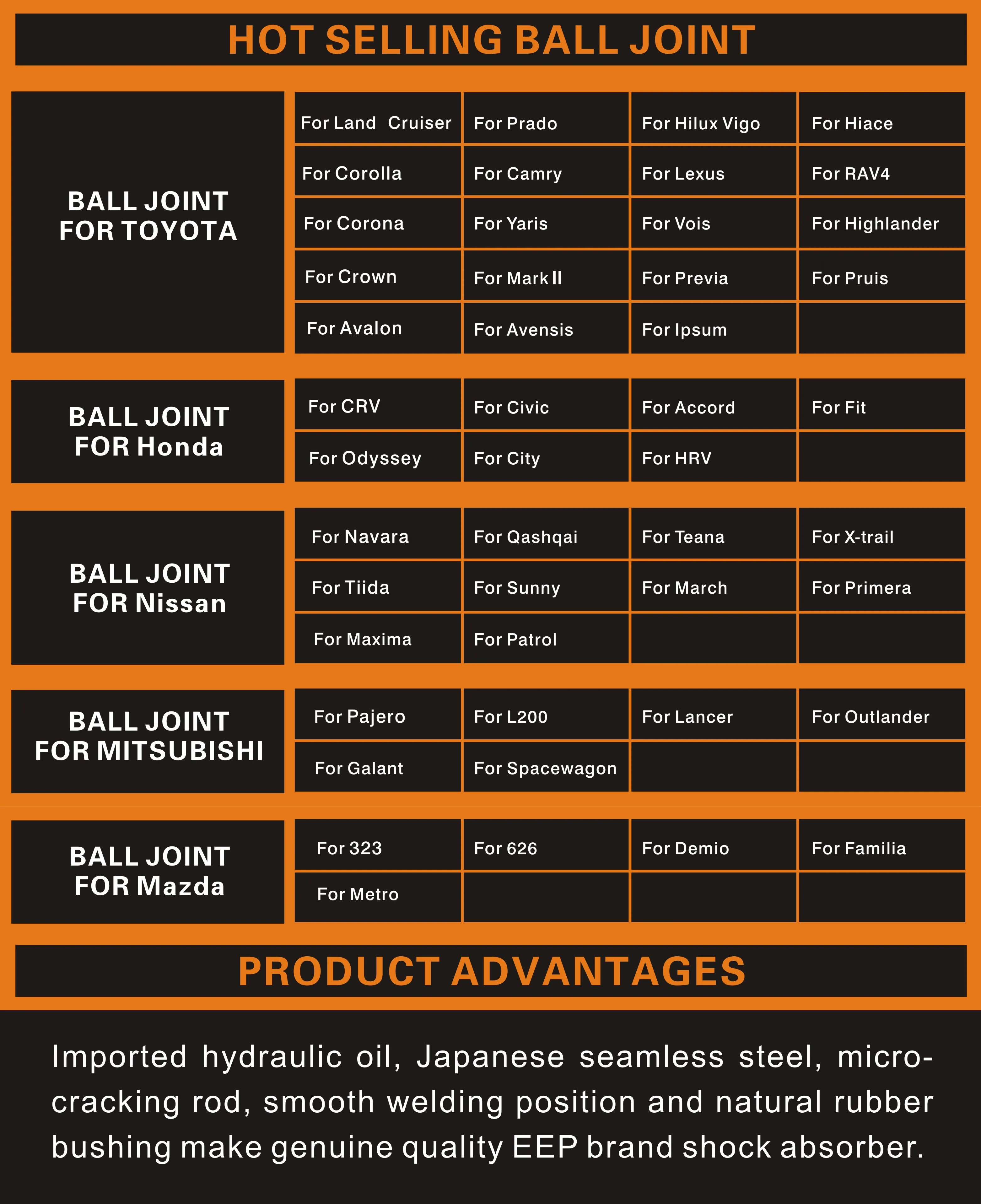 | Car Fitment: | Toyota; | Packaging Detail: | EEP brand nylon bag & box EEP Brand Packing or as Customer's Requirements; |