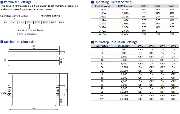 The stepper drive PSR5042 is a high performance microstepping driver based on pure sinusoidal current control technology.