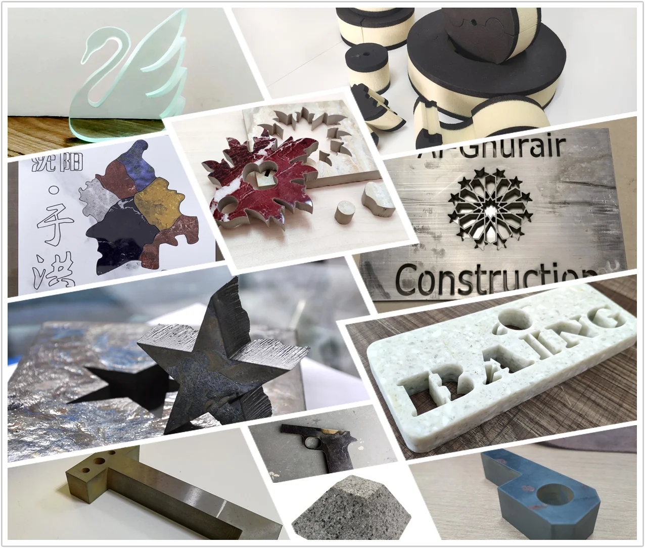 Water jet cutting machine can cut metal,stainless steel, stone, marble, glass, ceramics, compound materials,plastics,etc.