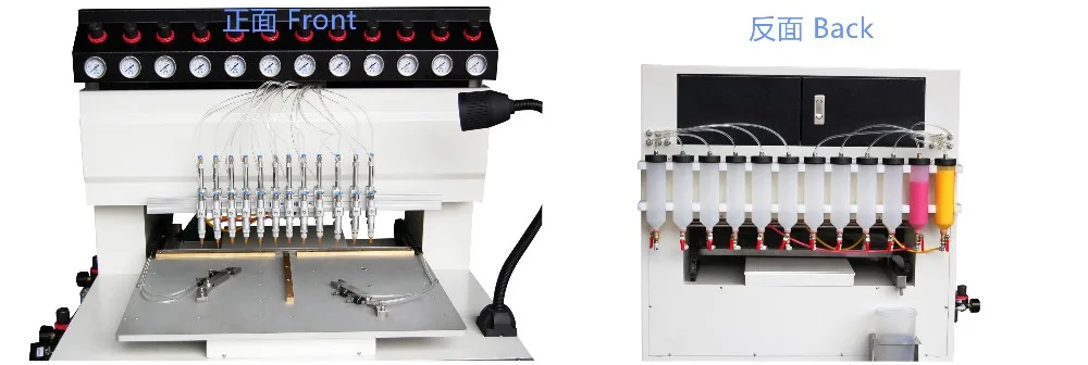 China Leading Manufacture of Precision Dispensing System for applying controlled amount of the liquid PVC &Silicon ,enamel , PU ,Epoxy ,UV glue used in footwear , garment , luggage , metal enamel emblems ,advertising industrial manufacturing process .
