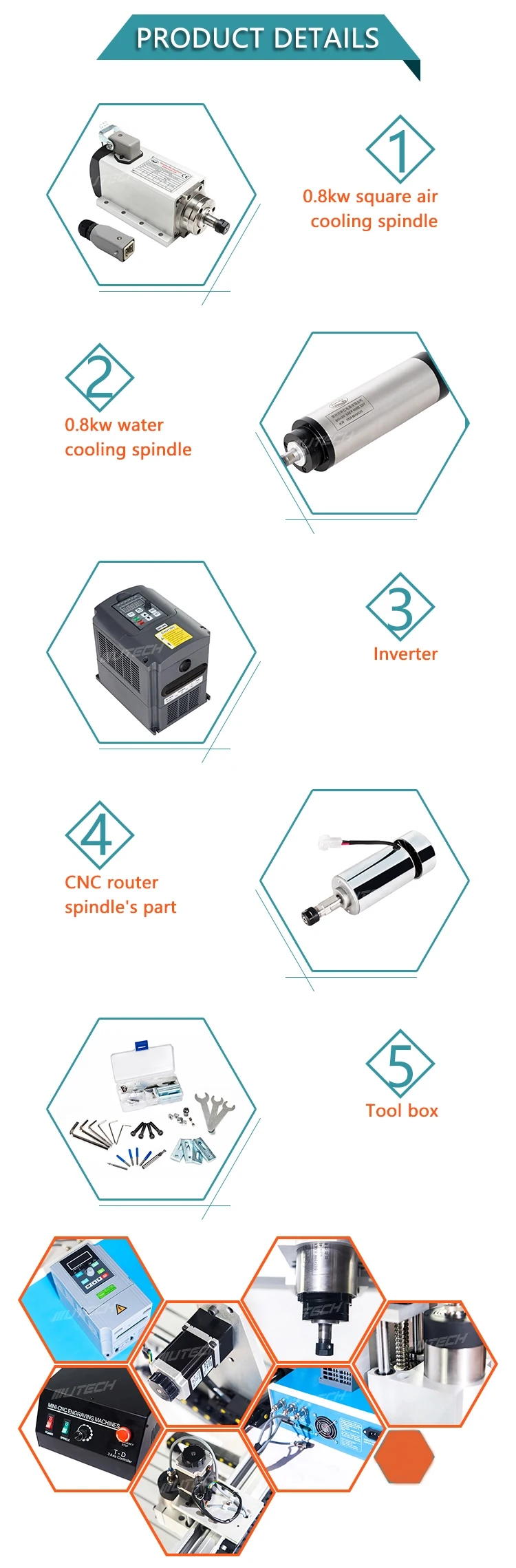 2.spindle (air cooled or water-cooled optional )