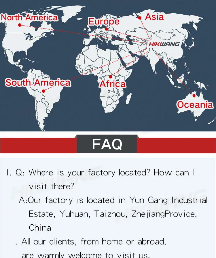 1. Q: Where is your factory located? How can I visit there? . All our clients, from home or abroad, are warmly welcome to visit us. |