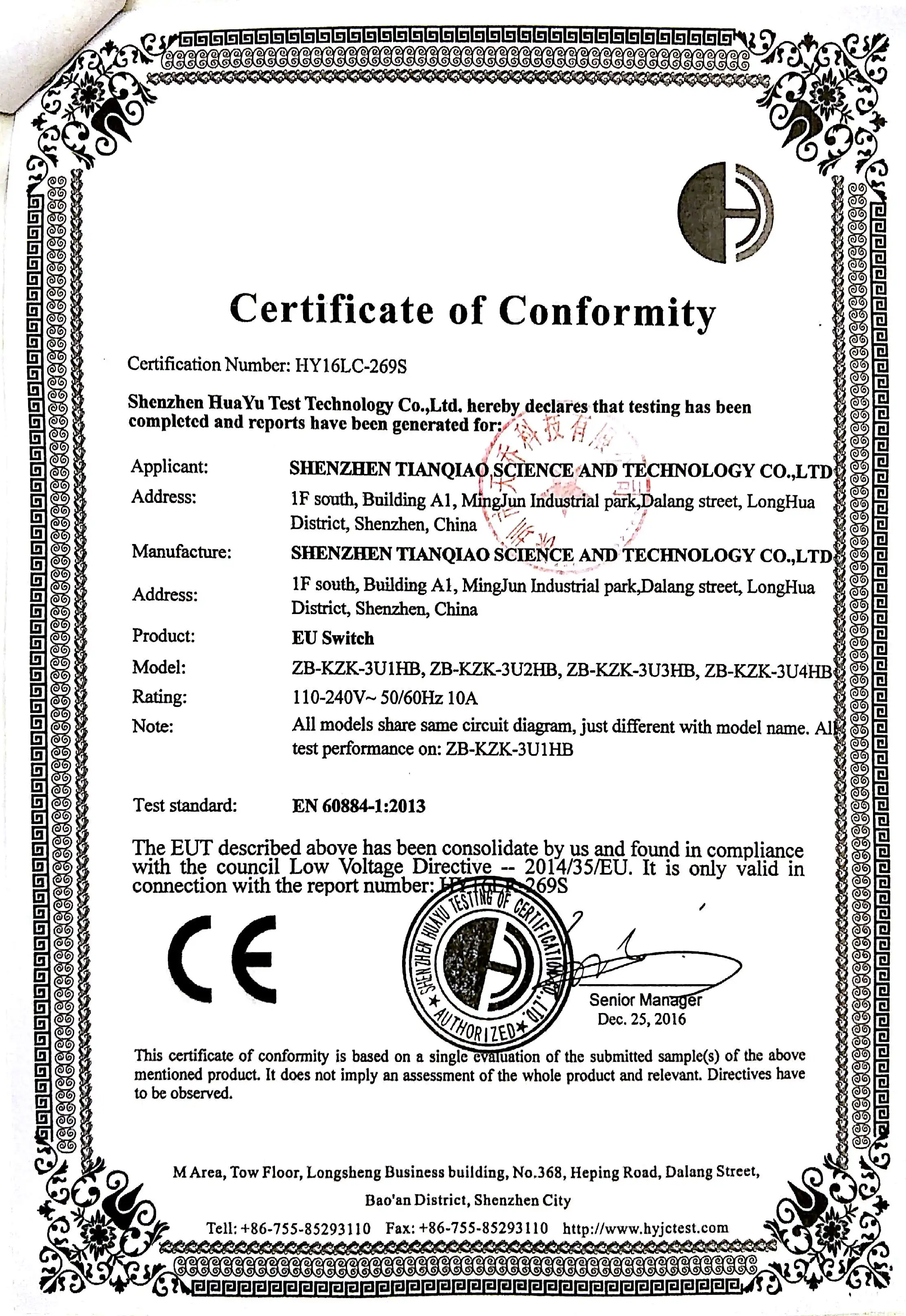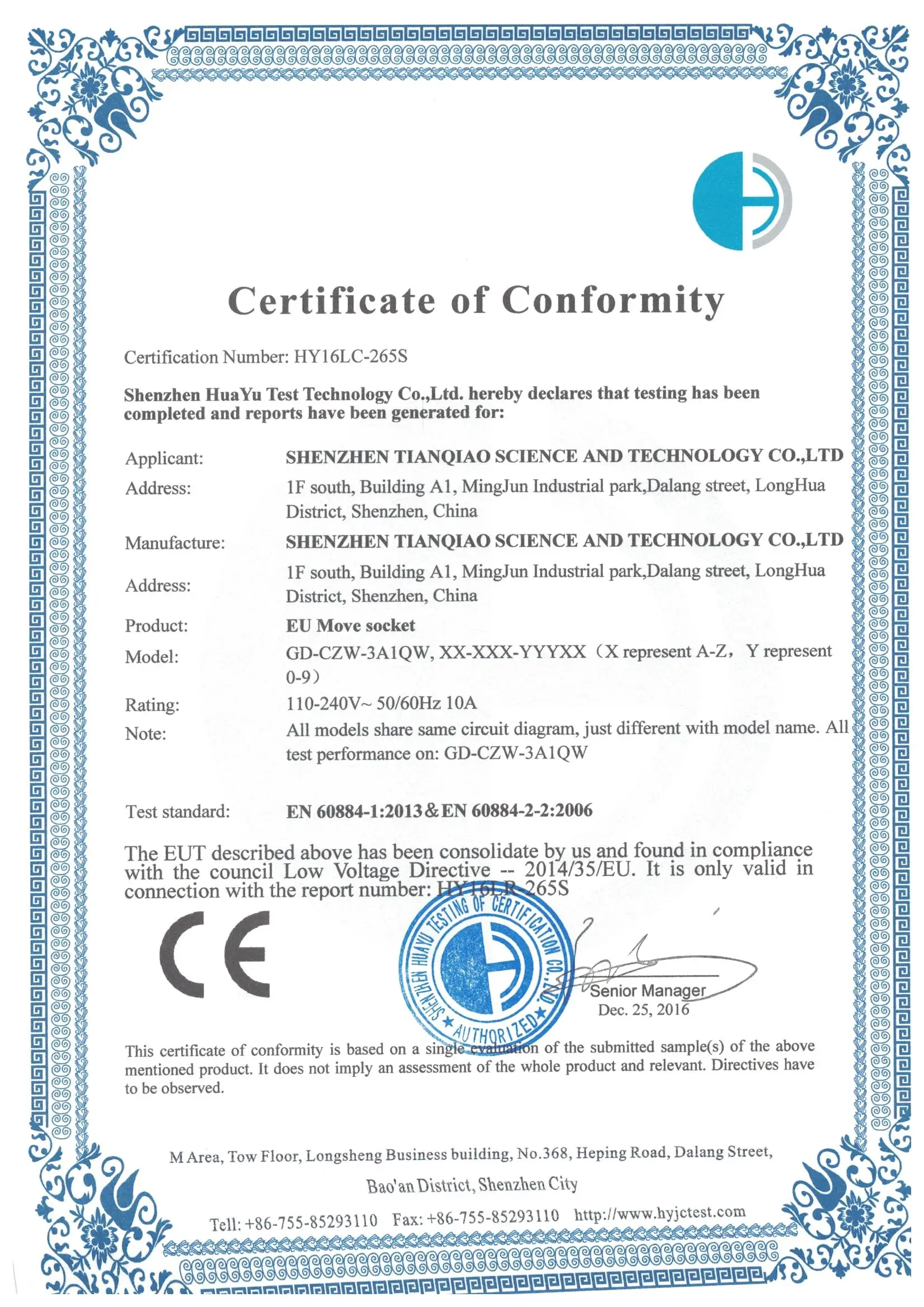 | Certificate | CE ROHS FCC |