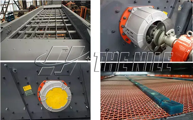 The round vibrating screen machine produced by the Nile mainly consists of a screen box, a screen, a vibrator, a vibration absorber spring device, a chassis and so on. The vibrator is installed on the side plate of the screen box, and the motor rotates through the triangle belt to produce the centrifugal inertial force and force the vibration of the screen box. The side plate of the screen machine is made of high quality steel plate, and the side plate is connected with the beam and the base of the exciter with high strength bolts or rivets of ring groove. The vibrator is mounted on the side plate of the screen box and rotated by the motor through the coupling to produce centrifugal inertia force, forcing the screen to vibrate.