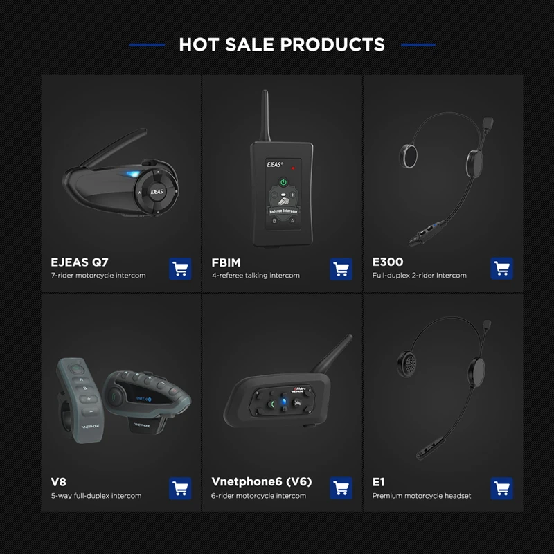 Shenzhen EJEAS Technology Co., Ltd. was founded in 2005. As early as 2007, EJEAS paid great attention to offering safe and instant Bluetooth communication products for the broad motorcycle friends. Over the past decade, we’ve independently developed, produced and sold multiple types of products. From the entry-level two-person intercom to multi-person simultaneous intercom with numerous functions, our communication products have satisfied various requirements of different groups of people, while these products have also reached over 80 countries and regions all over the world. More importantly, they have been highly recognized and welcomed at home and abroad. However, we’re not satisfied with current situation. We lend an ear to voice of customer, while keeping discovering the world full of possibilities. Aiming at creating the most enjoyable quality riding experience for consumers, EJEAS is buried in actively developing a more convenient and efficient outdoor cycling intercom.