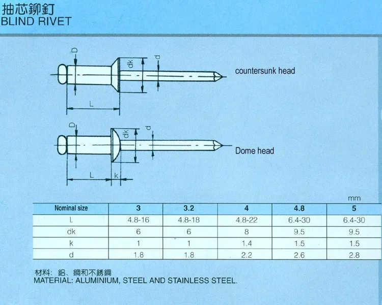 | Type: | open end rivet-dome head; | Application: | furniture, door, window,building; |