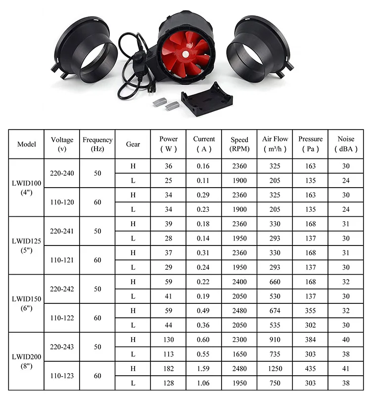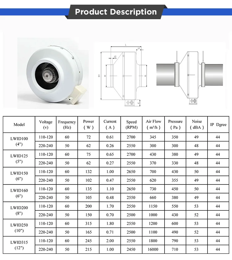 | Model Number : | LWID - Duct fans mixed flow fans ( Plastic material ) | ||