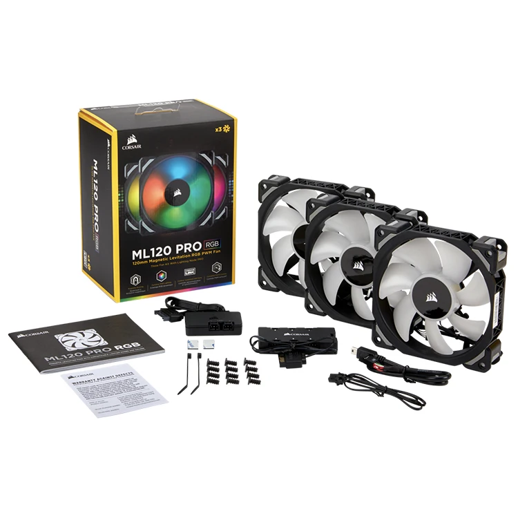 The ML120 PRO RGB PWM fan combines unrivaled performance and low noise operation, by utilizing magnetic levitation bearing technology, with vibrant RGB lighting controlled by the included Lighting Node PRO in iCUE software.
