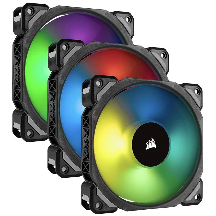 The ML120 PRO RGB PWM fan combines unrivaled performance and low noise operation, by utilizing magnetic levitation bearing technology, with vibrant RGB lighting controlled in iCUE software.